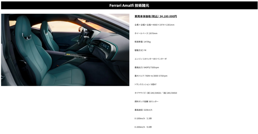 V8エンジンをフロントミッドに搭載し、伝統と革新を融合させた最新のラグジュアリー“2+“クーペ『Ferrari Amalfi』