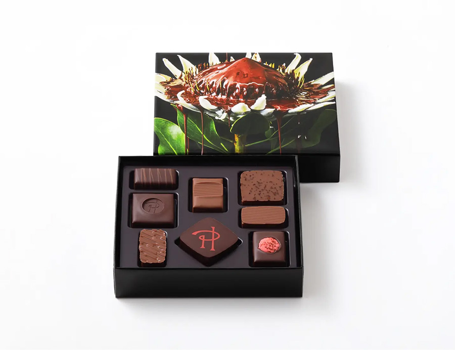 ショコラと花々の艶やかな共演。フラワーアーティスト東信さんのアレンジメントを施したショコラギフト。パティスリー界のピカソと称されるピエール・エルメのショコラは、あたかも魔法の秘薬のように、強烈かつ斬新な味覚を堪能させてくれます。口の中でソフトにとろけるショコラを心ゆくまでお楽しみください。
