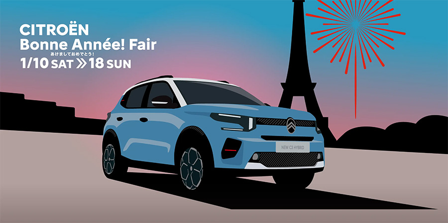 Bonne Année!=あけましておめでとうございます。2026年の始まりを飾るシトロエン新年のフェアを開催します。楽しさあふれるプレゼントを用意して、皆様のご来場をお待ちしています。