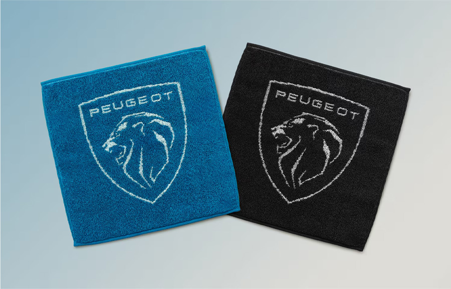 プジョーエンブレムを大胆にあしらった、上質なタオルハンカチです。